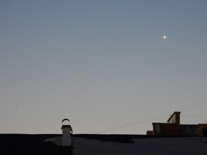 Венера 23.03.2025 проходила между Землёй и Солнцем и имела поэтому самый большой видимый размер и самую маленькую фазу. Незадолго до этого момента Венера попала в поле зрения фотоаппарата (рис. 3).