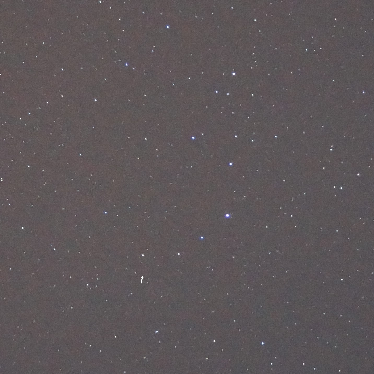 Рис. 8. Северная Корона (фото автора). Положение звезды T Северной Короны отмечено стрелкой