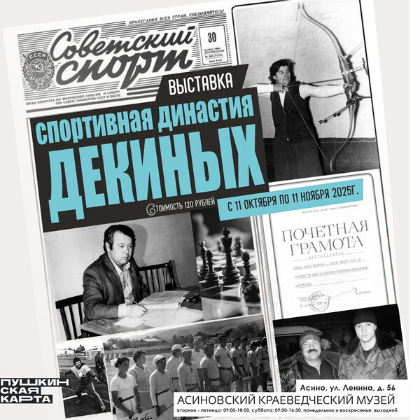 Моё знакомство с историей этой семьи началось с посвящённой ей выставки, которая на протяжении месяца работала в Асиновском краеведческом музее. Начало рождению спортивной династии положили Владимир Александрович и Мария Ивановна Декины. Молодые поколения асиновцев уже и не знают, что они развивали в нашем городе такое спортивное направление, как стрельба из лука. В начале семидесятых годов в Асине даже появилась спортивная школа такого направления, а наши лучники блистали на чемпионатах всесоюзного уровня.