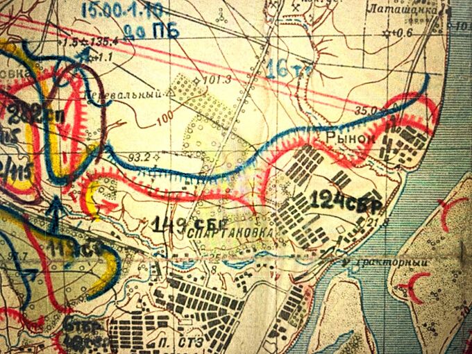 «…В результате разрушительных, непрерывных боёв в Спартановке и Рынке, осталось всего три кирпичных здания: водокачка, школа и пожарное депо, все остальные здания превратились в груду развалин...»28