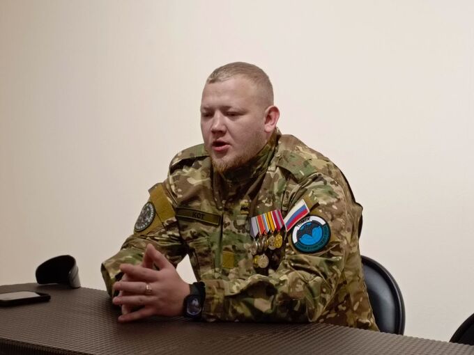 Об истории профессионального праздника военных разведчиков собравшимся рассказал старший научный сотрудник ТОКМ Константин Подковыркин. Затем он представил гостя. Виктор служил под Авдеевкой, находился в составе штурмовой разведгруппы и был оператором БПЛА — выявлял позиции противника и оперативно передавал данные командованию.