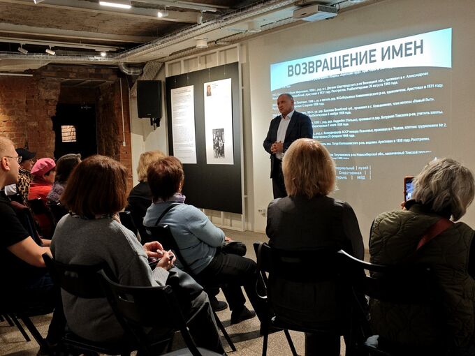 Впоследствии, после изгнания интервентов и победы большевиков в Гражданской войне, Соловецкий монастырь был преобразован в лагерь особого назначения (СЛОН). Разумеется, эту тему, памятуя о Дне памяти политических репрессий, не могли обойти сотрудники музея. На презентации выставки перед собравшимися выступили руководитель Центра изучения исторической памяти, доктор исторических наук В.Н. Уйманов и старший научный сотрудник Ю.К. Рассамахин. Исторический экскурс в историю Соловков вызвал живой интерес участников мероприятия, дискуссии о судьбах Родины. Рефреном сквозила мысль о том, что историческая память, гражданская идентичность, должны формироваться не только на эмоциях, но и на выверенных исторических фактах. И формирование исторической памяти нельзя «пускать на самотёк»: к этому формированию активней должны подключаться профессиональные историки и музейные работники. В помощь им – волонтёры, которые, как в случае организации выставки, передают в музей для экспонирования артефакты, привезённые ими с «недосягаемых Соловков».