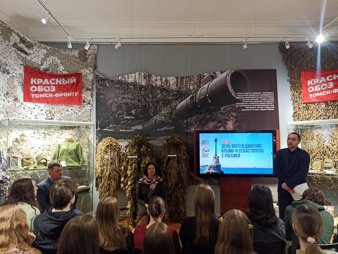 18 марта, в День воссоединения Крыма и Севастополя с Россией в Томском областном краеведческом музее прошла Военно-патриотическая программа «Война — рассказы и воспоминания», которая была приурочена к этой знаковой дате, символизирующей единство и историческую преемственность поколений. В зале собрались студенты колледжа культуры и учащиеся лицея № 7 (активисты «Движения Первых»), чтобы из первых уст услышать о том, как история пишется сегодня.