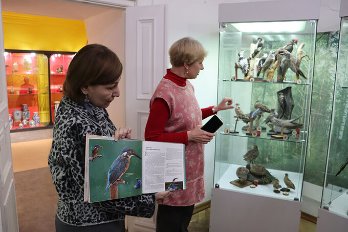 Старший научный сотрудник культурно-образовательного отдела Евгения Владиславовна Гоппе поведала истории экспонатов выставок «Животный мир Томской области» и «Великий чайный путь».