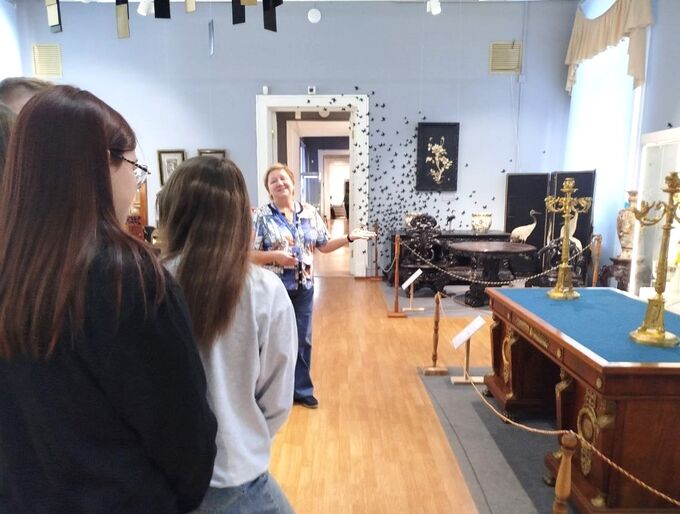 В нашей программе ребята получают учебное пособие о правилах проведения экскурсий и могут увидеть их на практике. В начале программы, во время обзорной экскурсии по музею, мы посетили выставки «Стильный Томск. Антикварная мебель из коллекции музея», «Маяки русского мира. Возрождение» и другие.