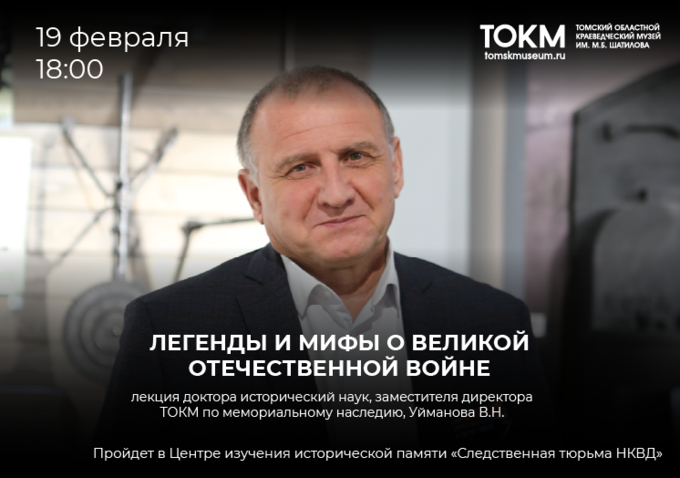 Лекцию прочитает Валерий Николаевич Уйманов, доктор исторических наук, заместитель директора ТОКМ по работе с мемориальным наследием