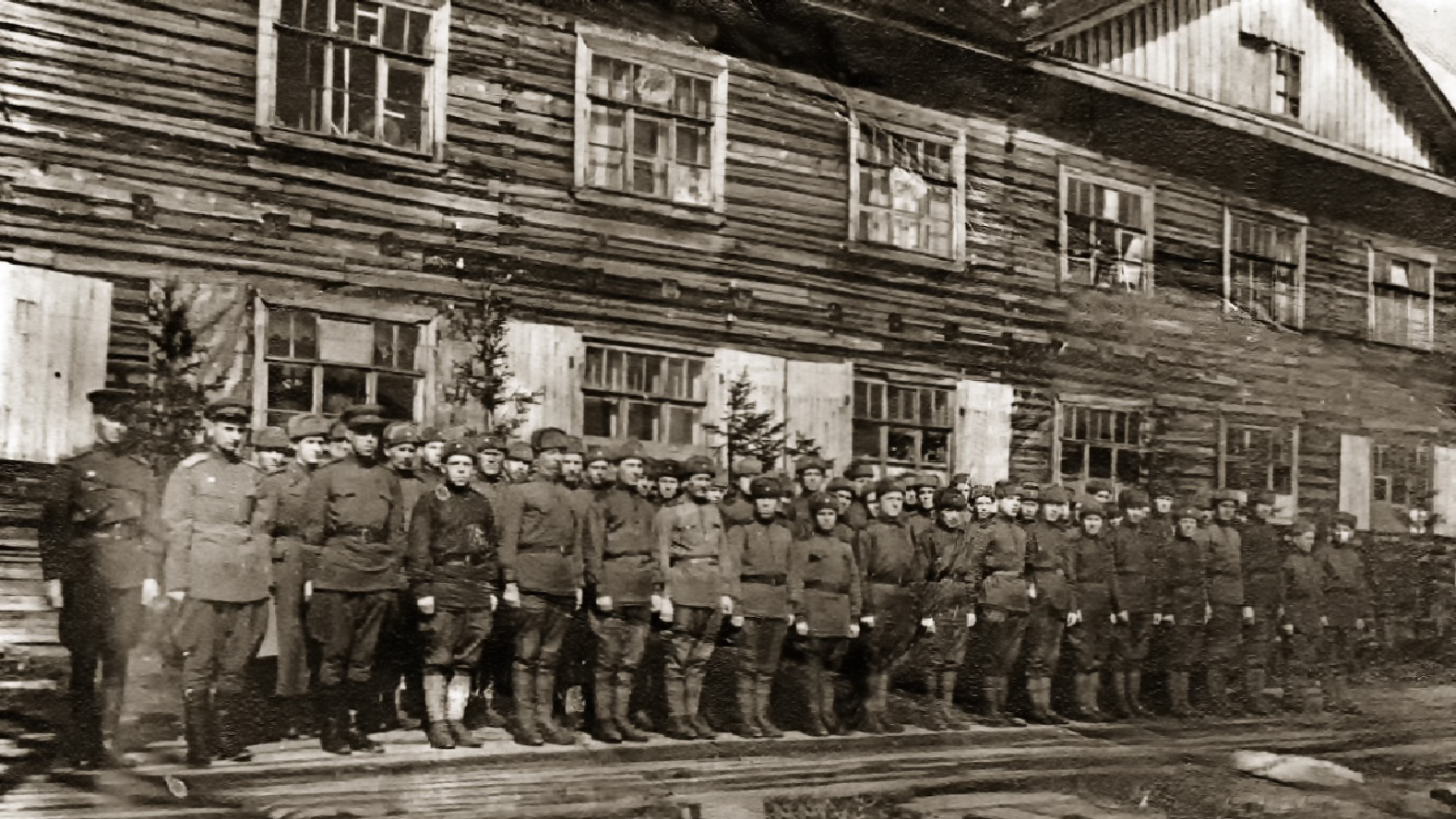 40-й МТО. Построение. Первый слева – командир отряда подполковник В.П. Родюков. Г. Беломорск.